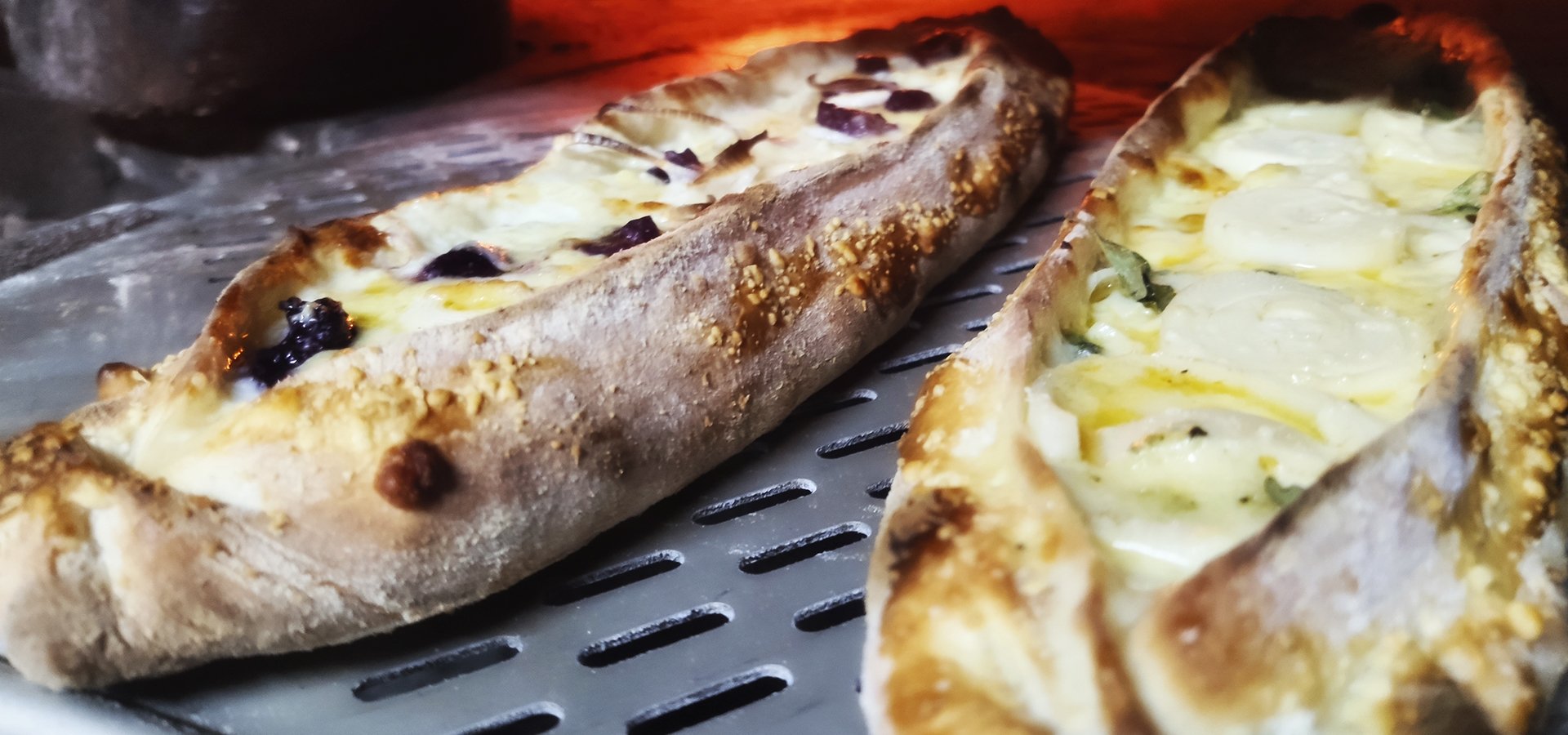 tomate, mussarela, requeijão, alho poró, toque de gorgonzola e azeitonas pretas